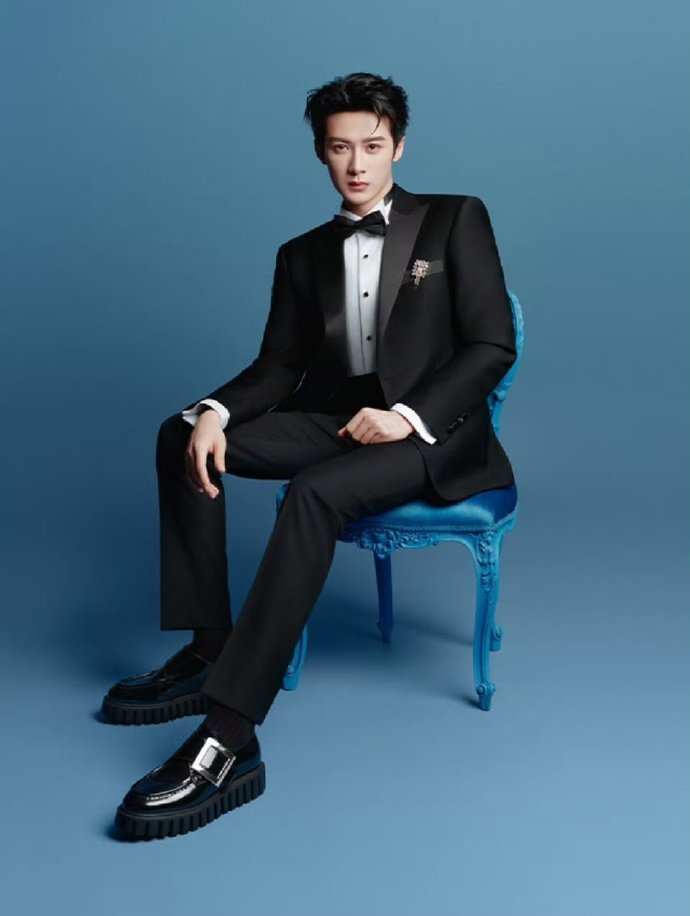 很少有人注意到,檀健次这套造型的鞋履藏着显高密码。他脚上的黑色漆皮牛津鞋来自RV,鞋头的金属蝴蝶结与西装上的蝴蝶元素形成主题呼应,而5cm的隐形鞋跟则在视觉上拉长了腿部线条。这种「低调增高」的思路特别适合小个子男生——避免笨重的厚底鞋,选择带有精致装饰的低跟款式,既保持优雅又能悄悄「长高」。如果想尝试更休闲的风格,换成黑色切尔西靴也很合适,靴筒包裹脚踝的设计能让下半身比例更紧凑,配上西装裤的微喇裤脚,走路带风的气场立马有了。