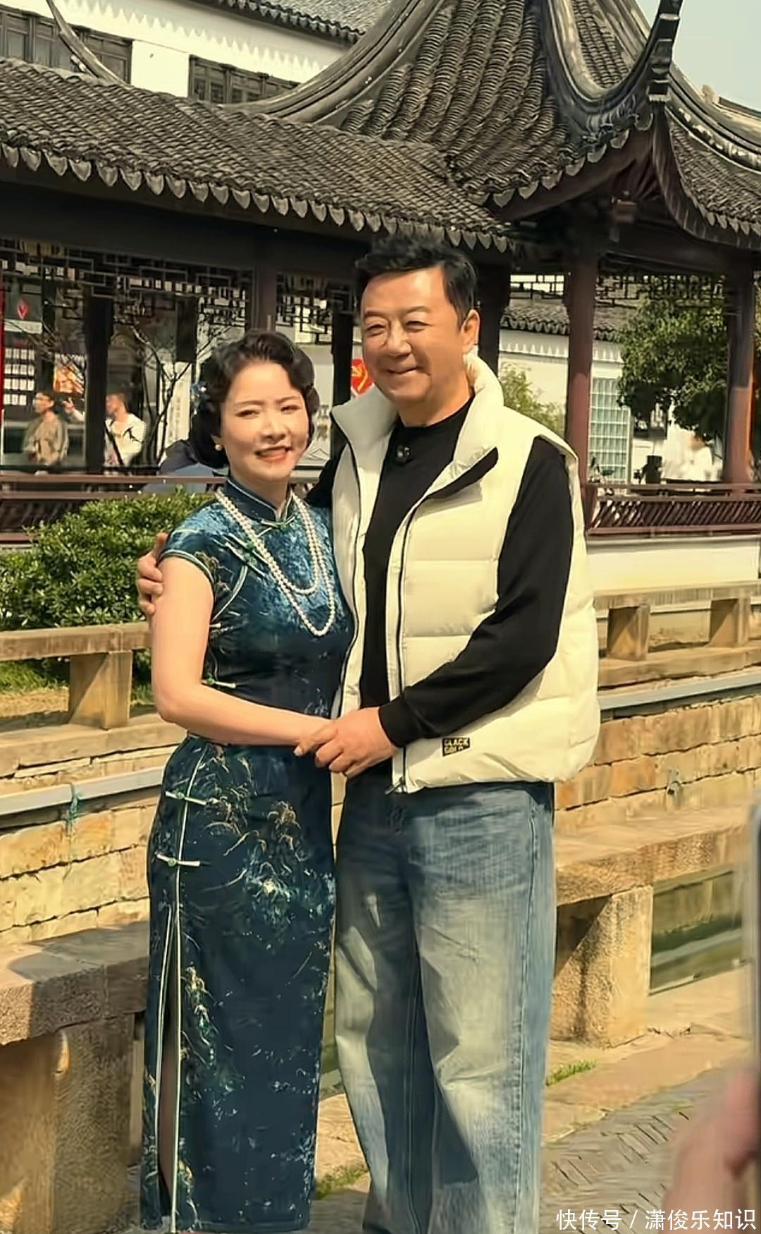 这对相差17岁的夫妻,郭涛58岁,李燃41岁,结婚整整20年,站在一起却完全看不出岁月的落差。郭涛这张脸也是有意思,年轻时显得老成,如今反倒成了优势,这么多年好像就没怎么变过。而李燃的身材被旗袍勾勒得凹凸有致,端庄又秀丽,两人这一组合,活脱脱像是一对跨越了民国与现代的眷侣,走到哪儿都引得路人纷纷驻足。